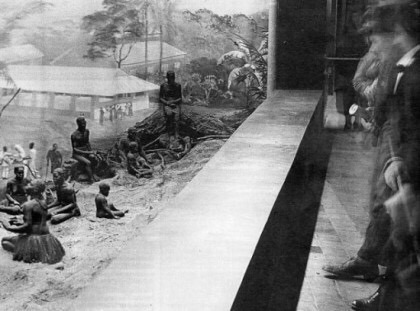 일본의 덴노지 동물원과 신사이바시 쇼핑 거리 등에서 작가 자신을 동물 우리에 가둔 퍼포먼스다. 1878년 제3회 파리 만국박람회에서 식민지 원주민들을 전시했던 '인간 동물원'이 떠올랐다. 당시 세계열강들의 식민지 자랑을 앞다투어 벌인 셈인데, 나는 개인적으로 '동물원'은 아주 가기 싫어하는 곳이다. 철창에 갇혀 조롱하는 관객들을 향해 분노하던 고릴라의 눈빛을 지금도 잊을 수가 없다...