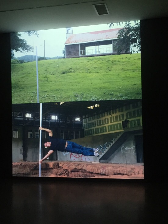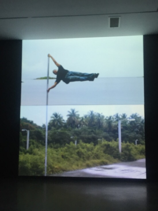 이번 전시회 포스터를 장식하고 있는 인간 깃발 영상이다. 미 해군에 의해 점령당했던 푸에르토리코 비에케스 섬에 대한 단편 영화 시리즈로, 23명의 체조선수가 차례로 등장해 만기(승리) 혹은 조기(상실)를 상징하는 깃발을 몸으로 세운다.