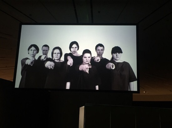 마지막 섹션으로 들어서자 앞에 커다란 화면에서 나를 향해 손가락질하는 한 무리에 깜짝 놀랐다. 1920년대 소련에서 널리 유행했던 정치적인 프로파간다 연극 운동인 '블루 블라우스'에서 영감을 얻어 제작한 이 영상은 침묵의 강요, 집단적 폭력, 억압과 감시를 암시한다.