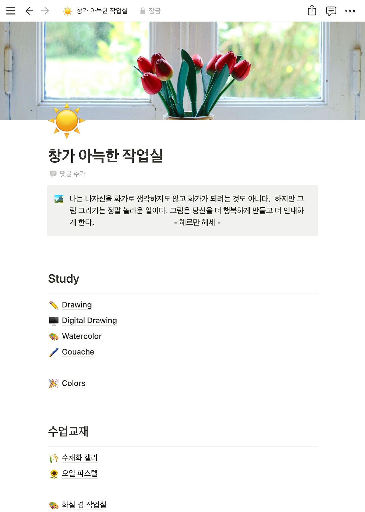 노션은 이미 아이폰에도 설치해 사용 중이었으나 외부에 링크를 건 단순 지식 자료 모음이었다. 제법 수가 늘어난 한국 유저들의 노션 극찬에 자극받아 나도 본격적으로 써보기로 했다. 과연 진입장벽은 높았으나 막상 익히고 나니 왜 그리 칭송을 했는지 잘 알게 되었다!! 나만의 멋진 공간을 만들고 나니 무언가 창작 의욕도 마구 솟아났다. 블로그보다 더 아늑한 21세기 판 버지니아 울프의 ‘자기만의 방’이 된 셈이다.