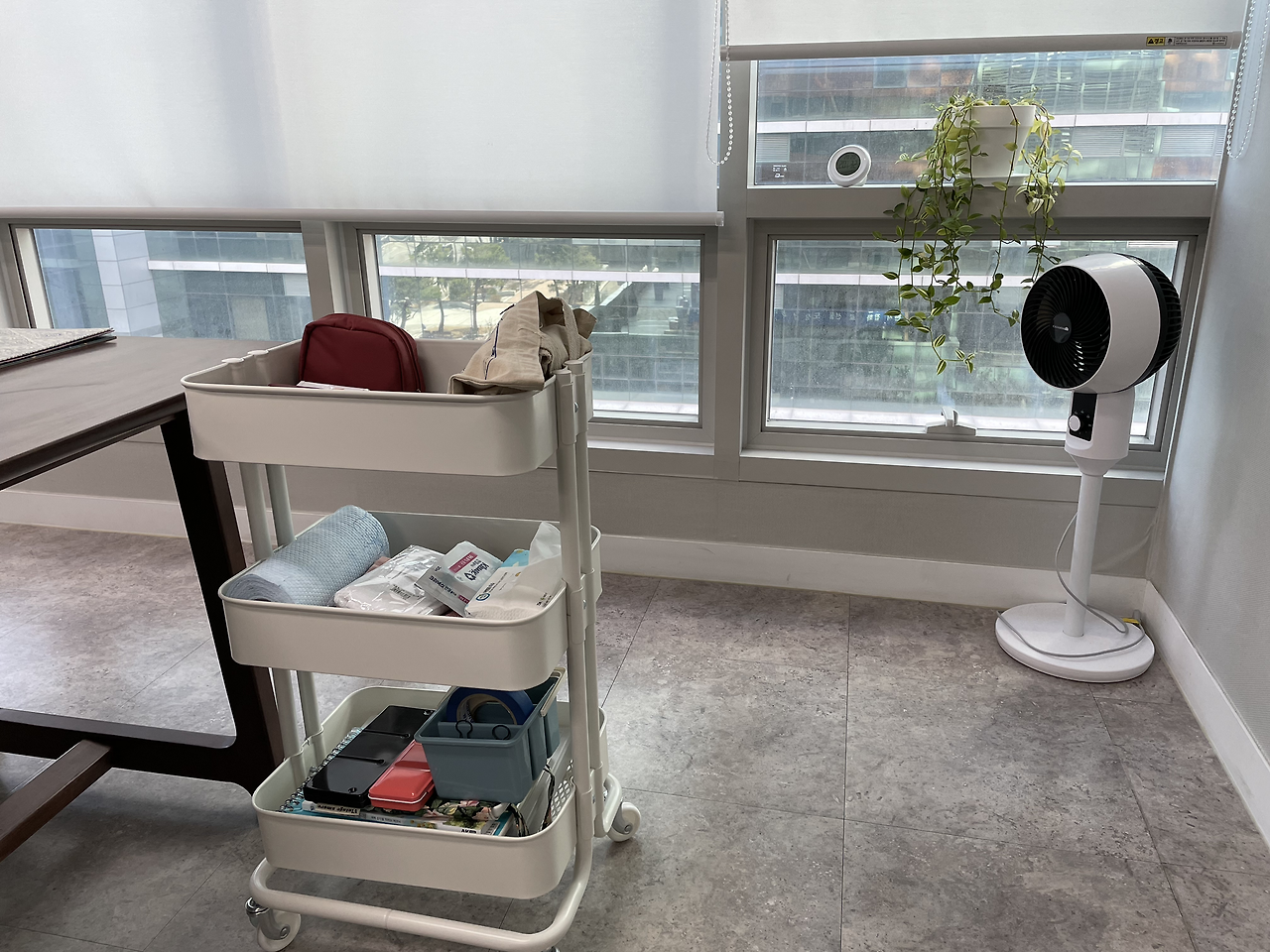 그밖에 너른 책상과 3단 트롤리, 사물함이 제공된다.