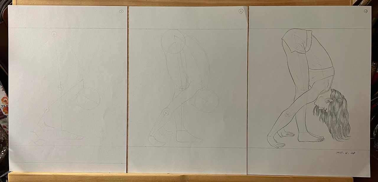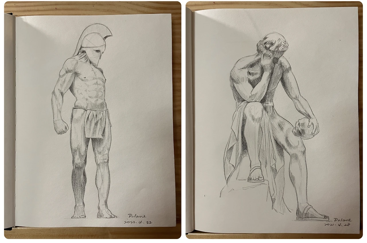 조각상과 무용수 그림도 같은 크로키 북에 다시 그리기 시작했다. 자신감에 찬 선으로 형태가 탄탄하게 그려지니 내 ‘자존감’도 덩달아 오르는 것 같아 신이 났다. 예전에 그렸던 작은 그림들을 다시 크게 그려보는 작업을 해보려 한다. 언제나 비교 대상은 남이 아닌 과거의 나 자신이니 포기하지 말고 조금씩 전진하기만 하면 된다.