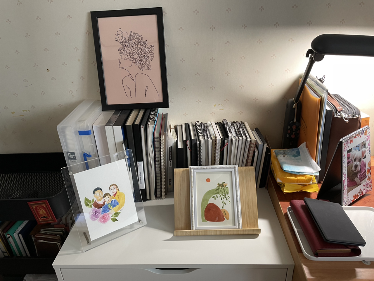 수업 때 가져가기 전까지 서랍장 위를 장식하는 그림들…
