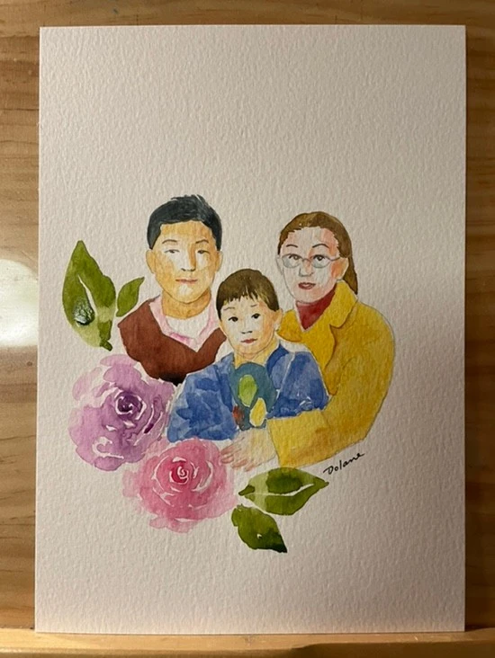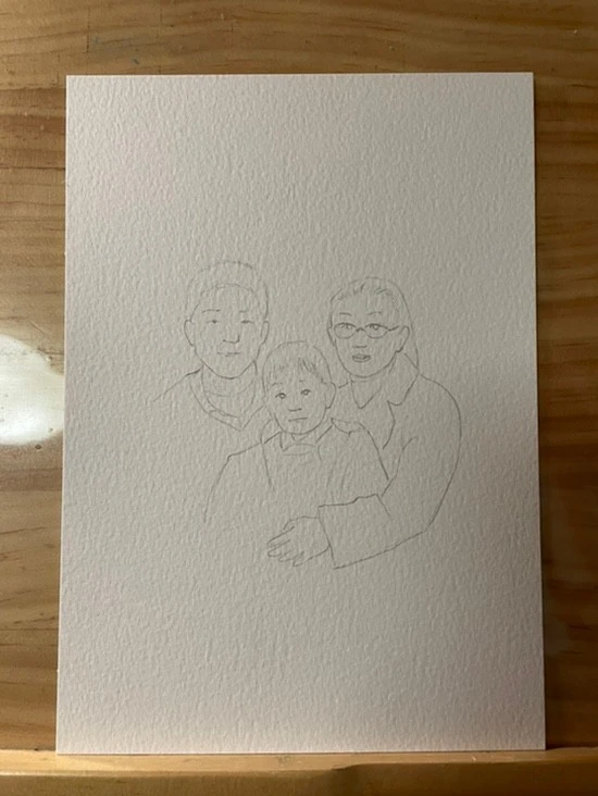 약 23년 전, 롯데월드에서 찍은 가족사진이 색이 다 바래져 몇 년 전에 수채화로 그리긴 했으나 영 마음에 들지 않았다. 그래서 다시 시도하니 꽤 괜찮게 그려졌다.