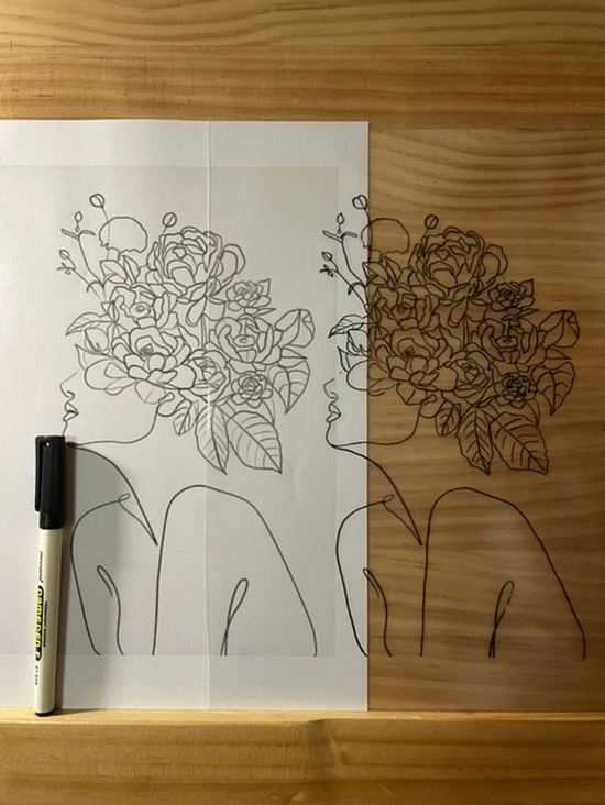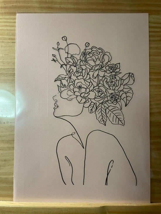 핀터레스트에서 참고 그림을 고르다가 아이디어가 번뜩 일어난 거다. 대놓고 베껴그리는 트레이싱 기법인데, 준비물은 클리어 파일 홀더와 네임펜만 있으면 됐다. 라인 드로잉은 선의 강약이 포인트라 선을 따라 그리며 그 섬세함을 표현했다.