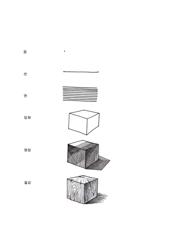 수많은 점들이 모여 선이 되고, 선들이 모여 면을 이루고, 면(2차원)들이 모여 입체(3차원) 도형이 되지요.