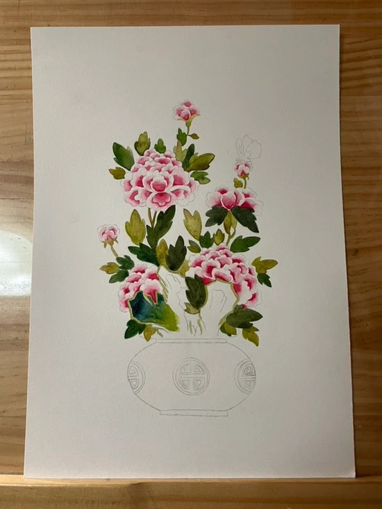 오랜만에 수채화로 민화를 그렸다. 수업자료로 준비한 거지만 반나절 꼬박 이 그림을 그리는 동안 아무 생각이 들지 않을 만큼 행복했다.