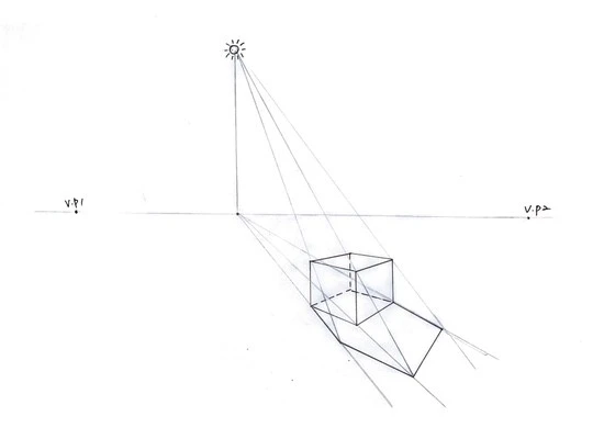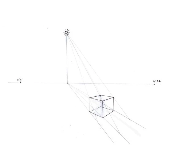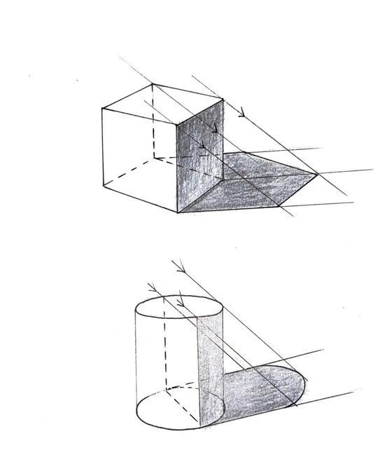 투시에 따른 빛과 그림자의 원리만 잘 이해하면 되겠습니다.