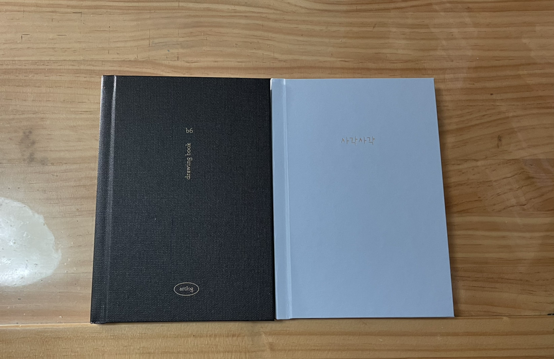 오른쪽은 260g에 총 60페이지인 드로잉북인데 파스텔톤의 4가지색이 있어요.