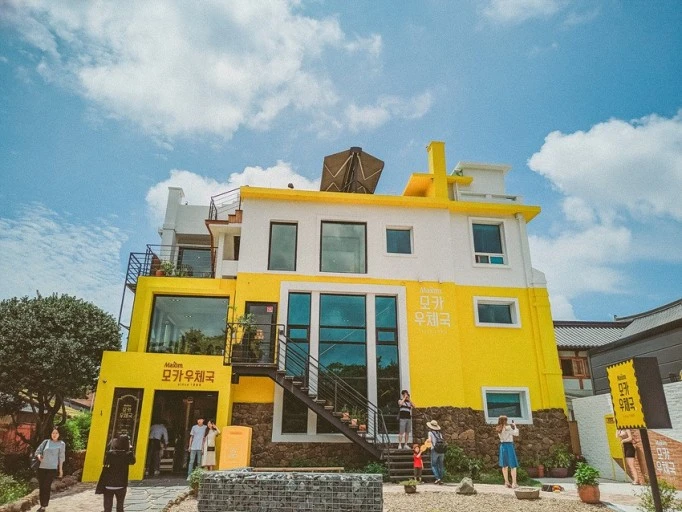 '모카 우체국'은 맥심 모카커피 전속 모델인 배우 이나영이 홍보한 예쁜 카페였다는 것만 알고 있었는데, 샛노란 건물색이 청명한 파란 하늘과 잘 어울려 우선 눈이 즐거웠네요.