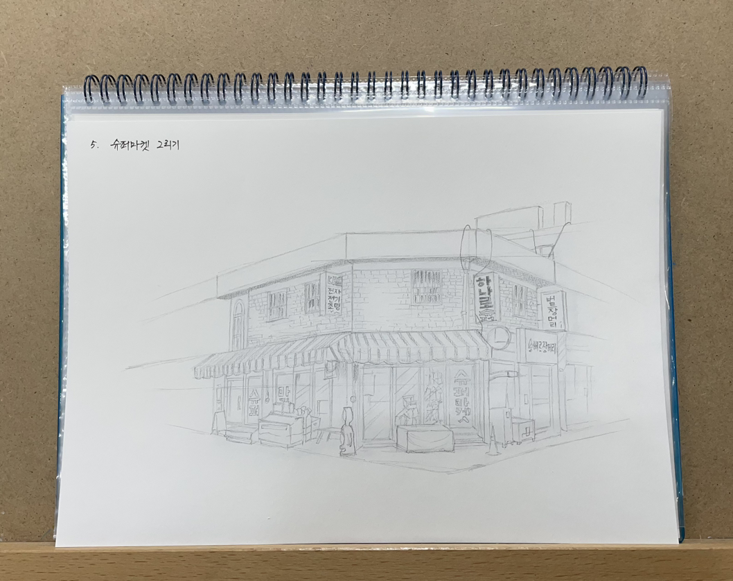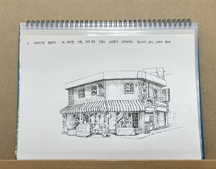 대개 어반스케치는 연필 스케치, 펜 드로잉, 채색 순으로 그려요.