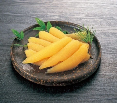 A : 청어(鰊)입니다. 예로부터 봄이 되면 홋카이도로 큰 청어 떼가 산란하러 밀려왔습니다. 청어알인 '카즈노코(数の子)'는 자손의 번영을 비는 상징물입니다. 어원은 '카도(청어의 다른 이름)코'가 변화한 것입니다.