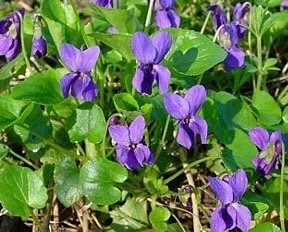 A : 제비꽃(菫)입니다. 일본의 제비꽃과의 식물은 60종 이상입니다. 꽃모양이 목수 연장의 묵호(墨壺)와 닮아 그 이름이 붙었습니다. 개화 시기는 3 ~ 4월입니다. 꽃말은 '성실' '작은 사랑'입니다.