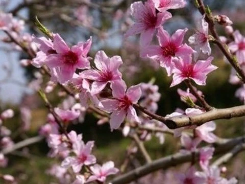 복숭아 꽃봉오리가 벌어지며 귀여운 꽃이 피기 시작하는 시기입니다. 옛날엔 꽃이 피는 것을 '웃는다'라고도 표현했습니다.