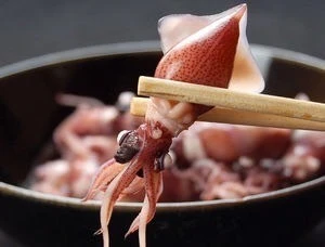Q : 도야마 만(富山湾)에서 무리 지어 노니는 제철 오징어는?