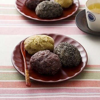 A : 팥떡입니다. 오히간 때 먹으면 조상들께 공양하는 것이 된다고 해, 에도 시대부터 시작된 풍습입니다. 봄은 모란꽃으로 간주해 '보타모찌(ぼた餅)', 가을은 싸리꽃으로 간주해 '오하기(おはぎ)'라 구분해 불렀습니다.