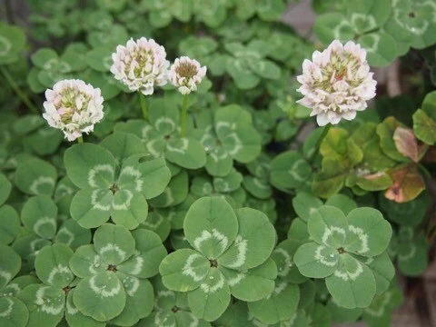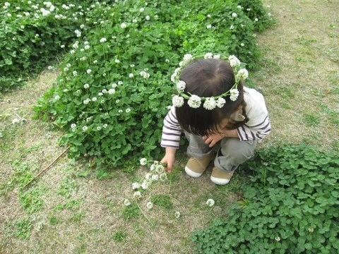A : 시로츠메쿠사(白詰草)입니다. 에도시대에 네덜란드에서 유리제품이 들어왔을 때, 짐들 틈새를 메우는 것으로 사용된 것에서 그 이름이 유래됐습니다. 네 잎 클로버는 십자 모양을 하고 있어, 행운의 상징이 됐습니다.