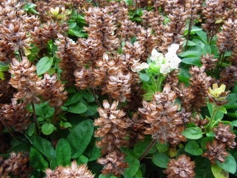 6월 무렵부터 보라색 꽃들이 피고, 시들면 갈색이 되는 꽃이삭은 한방약으로 쓰입니다. 건조시킨 것을 달여 마시면 이뇨나 소염작용, 혈압강하 등에도 효과가 있습니다.