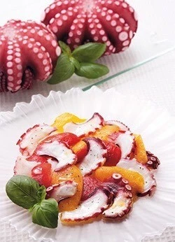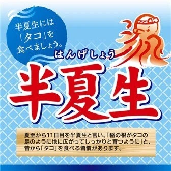 A : 문어(蛸)입니다. 문어 다리처럼 농작물이 대지에 제대로 뿌리를 내리도록 기원하며 먹는 풍습입니다. 문어는 아미노산의 타우린이 풍부하여 무더운 계절의 피로회복에도 좋습니다.