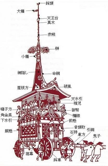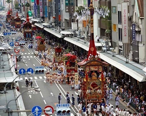 A : 기온마츠리(祇園祭)입니다. 무병식재를 기원하는 야사카 신사(八坂神社)의 제례로, 9세기부터 이어온 여름 풍물시입니다. 일본 3대 마츠리 중 하나인데, 특히 17일에 행하는 야마보코(山鉾) 순행과 미코시(神輿) 행차가 최대 볼거리입니다.