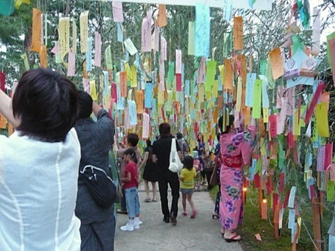 소원을 적은 단책(短冊 조붓한 종이)을 조릿대에 장식하는 건 에도시대부터 시작된 일본 특유의 행사입니다.