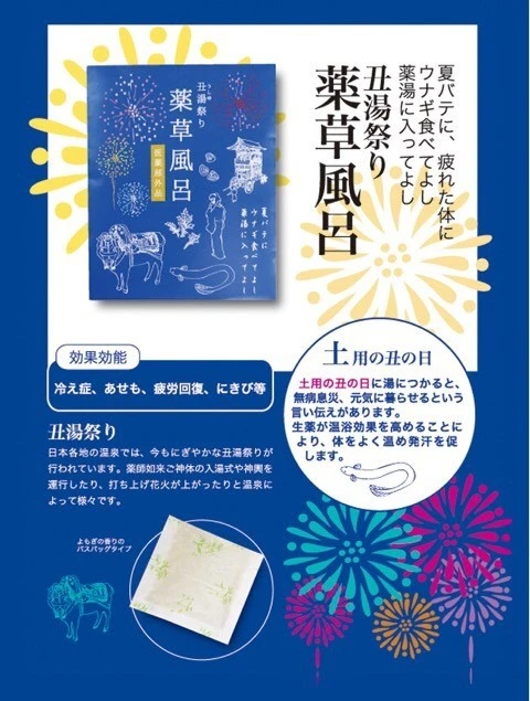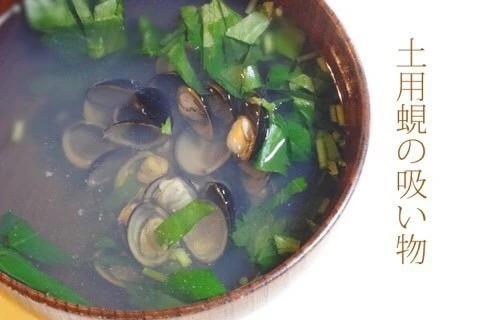 여름의 도요는 입추 전 18일 간입니다. 소(丑 우시)의 날에는 장어 등 '우'자가 들어간 걸 먹거나 '축탕(丑湯)'이라는 약탕에 들어가는 관습, 도요떡(土用餅), 도요 바지락(土用蜆) 등, 여름을 이겨내는 여러 가지 풍습이 남아 있습니다.