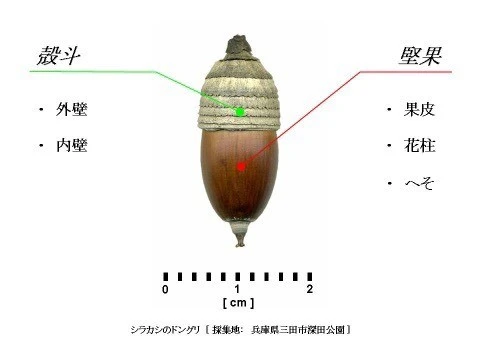 A : 상수리나무, 졸참나무, 떡갈나무 등의 참나뭇과 나무 열매의 총칭으로, 일본에는 약 22종이 있습니다. 각두(殻斗)라고 부르는 깍정이로 덮혀져 있습니다. 조몬시대(BC 13000~BC 300)에는 떫은맛을 제거해서 먹었다고 합니다.
