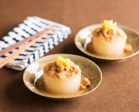 A : 무입니다. 제철은 늦가을~초겨울입니다. 뿌리에 가까울수록 매워, 단맛이 있는 가운데 부분은 후로후키(ふろふき)로, 잎에 가까운 쪽은 무즙이나 날로 먹습니다. 비타민C와 소화효소가 풍부해 위장 운동에 도움이 됩니다.