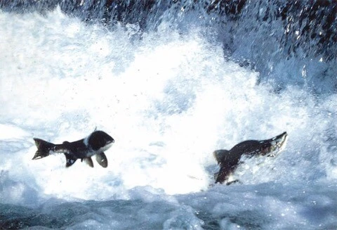 연어가 산란을 위해 강을 거슬러 올라가는 때입니다. 연어는 강 상류에서 태어나 아직 10cm도 자라지 않은 채 바다로 나갑니다. 몇 년 동안 크게 성장한 후, 가을부터 겨울에 걸쳐 태어났던 강으로 되돌아옵니다. 산란장소를 찾으면서 큰 무리로 강을 거슬러 올라가, 산란하고 수정을 끝마치면 기력이 다해 죽고 맙니다.