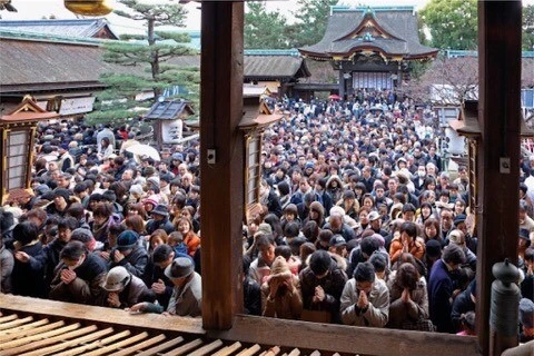 A : 옛날엔 가장이 섣달 그믐날부터 설날까지 씨족신을 모신 신사나 절에 틀어박혀 기도하는 '토시고모리(年籠り)' 관습이 있었습니다. 이것이 '제야예(除夜詣 조야모우데)'와 '원단예(元旦詣 간탄모우데)'로 나뉜 것이 첫 참배의 원형이 됐습니다.