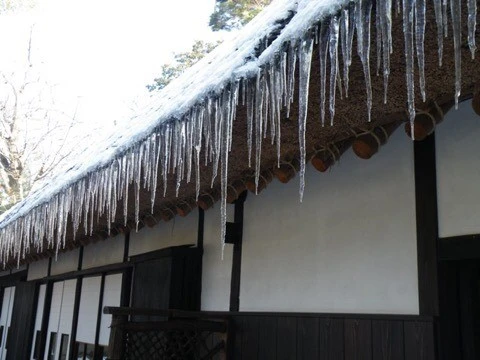 '츠라라(氷柱 고드름)'의 어원은 미끄러운 모습을 표현한 '츠라츠라(つらつら 곰곰이)'가 변화한 것이라고도 합니다. 고드름이 달려있는 광경은 몹시 추워 보이지만, 세이쇼나곤(清少納言 헤이안 시대 여류 작가)은 '수정 폭포'라 읊으며 아름답게 빛나는 그 모습을 칭송했습니다.