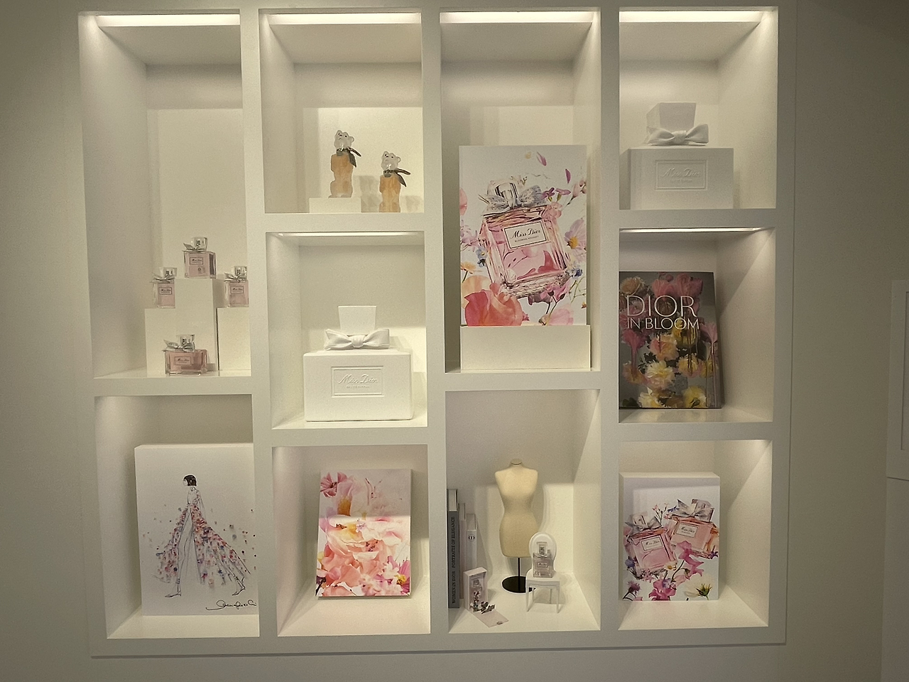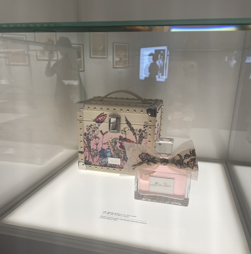 줄을 따라 입구에 들어서니 꽃향기 퍼져왔다. 스태프가 손목에 분홍 리본 띠를 둘러주고 팸플릿과 사은품이 든 미스 디올의 작고 하얀 쇼핑백을 나눠줬다. 크게 두 동으로 나눈 전시장의 공간은 협소했지만 경호원과 스태프들의 체계적인 동선 안내로 마음껏 사진을 찍고 감상할 수 있었다.