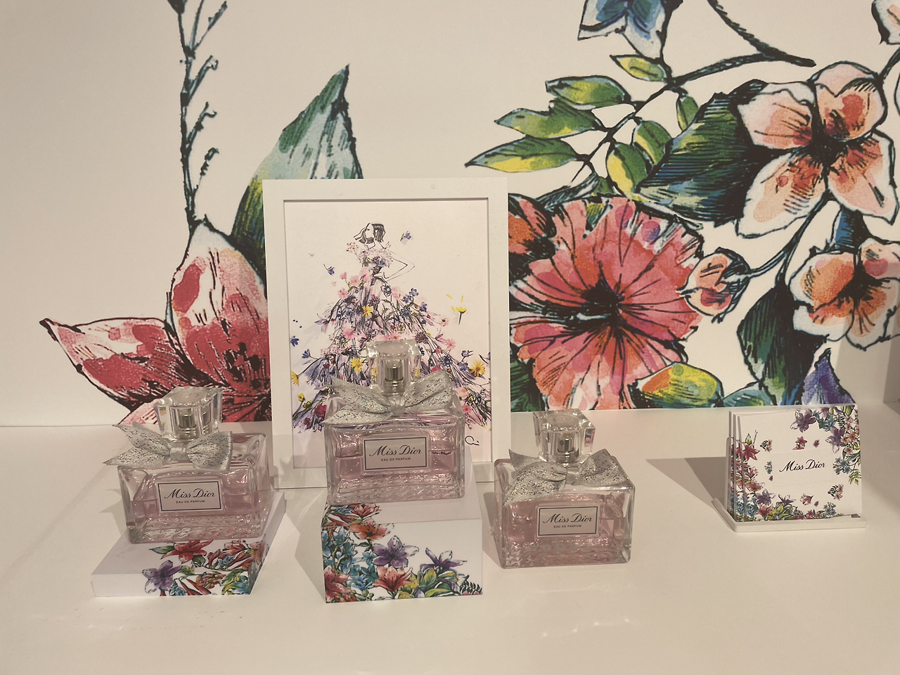 미스 디올의 세 가지 향수를 모두 체험할 수 있는 다양한 부스...