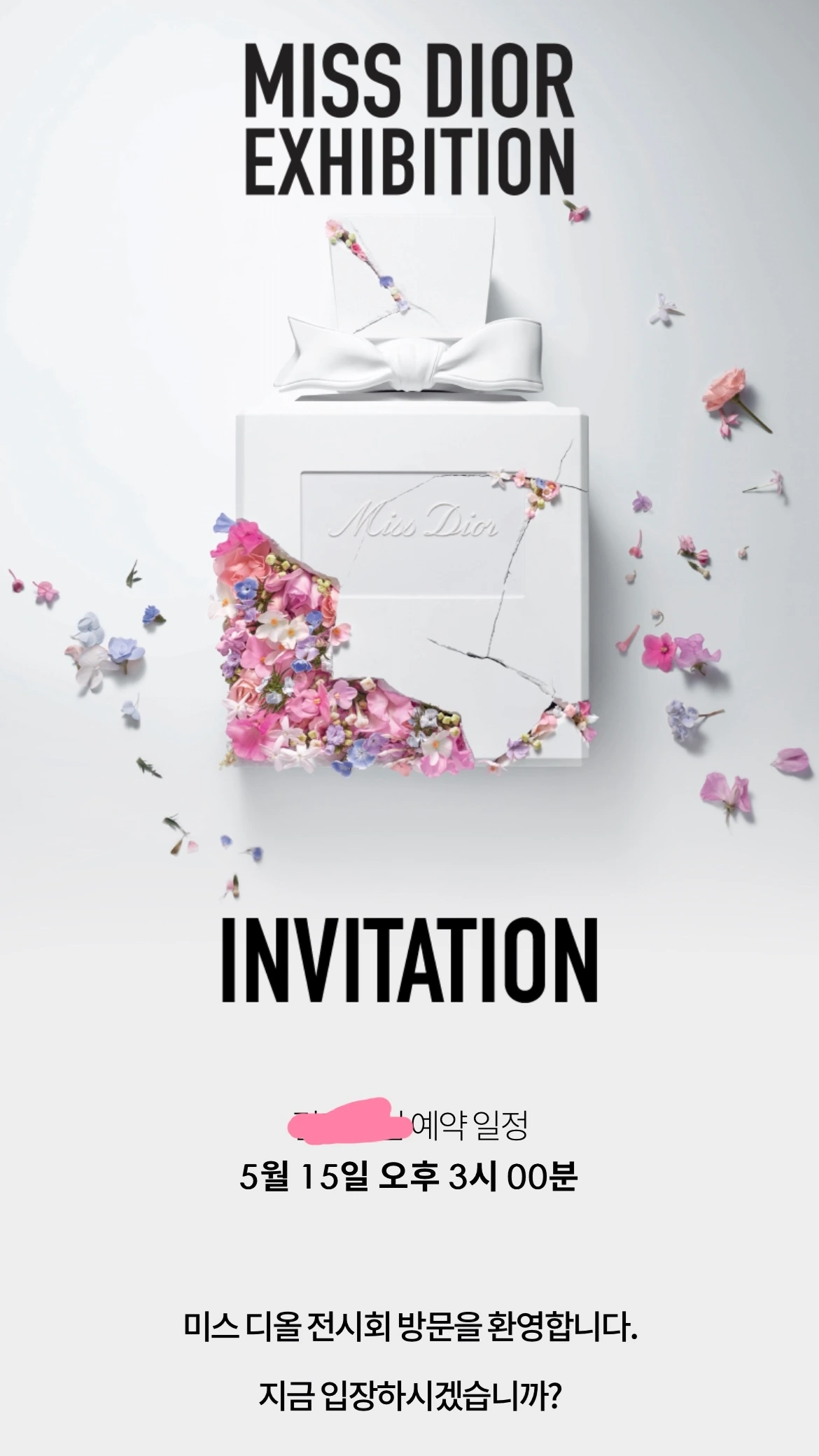 일전에 카톡으로 미스 디올 전시회 초대장이 와서 반가운 마음에 시간을 예약했었다.