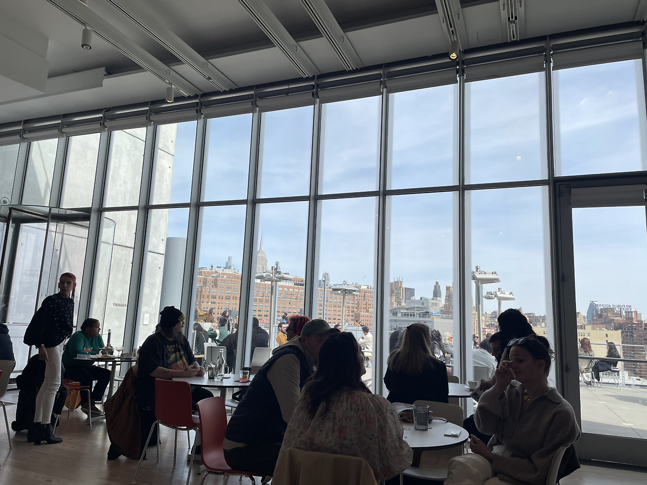휘트니 미술관에 들어가자마자 늦은 점심을 먹으려고 레스토랑이 있는 꼭대기 층으로 올라갔다. 레스토랑 바로 옆엔 탁 트인 주위 전망을 둘러볼 수 있는 곳이 있었는데 각 층마다 이어져 있었다.