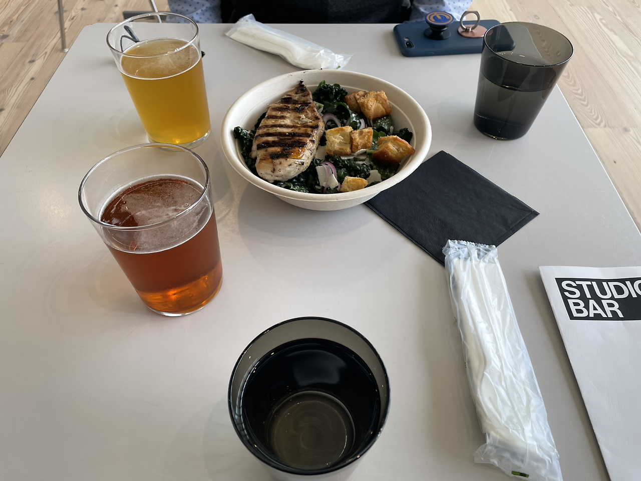 미술관 속 레스토랑이라 가격이 좀 있었지만 그리 출출하지 않아 치킨이 곁들인 샐러드와 맥주를 주문했다.