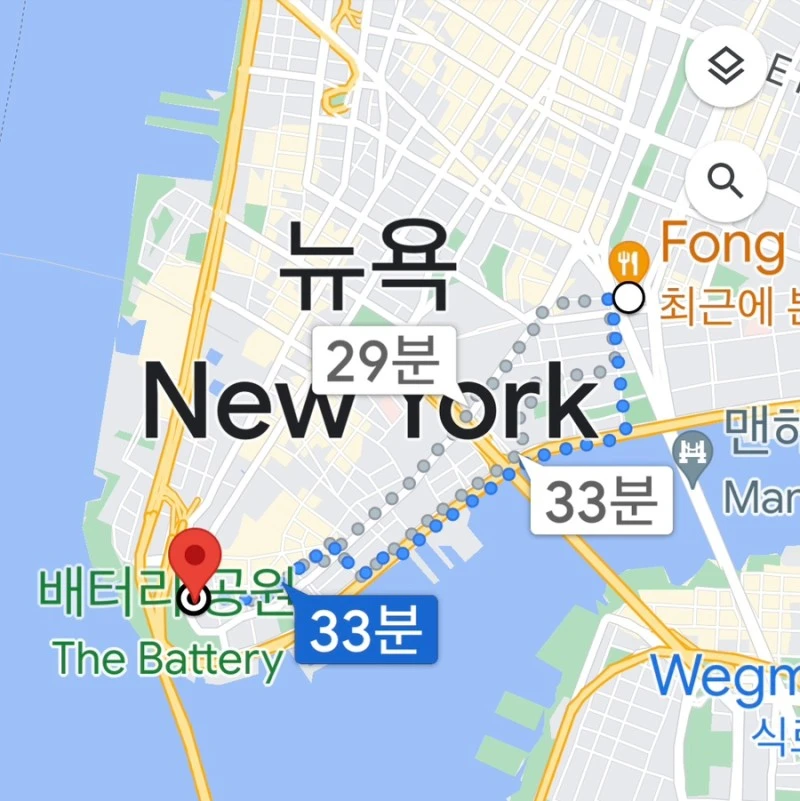 1시간도 채 안 돼 도착한 배터리 공원에서 공중 화장실을 찾아보니 굳게 문이 잠겨 있어 할 수 없이 근처 스타벅스로 갔다. 화장실을 이용하려고 커피 한 잔을 샀으나 그냥 들어가도 무방했다. 대형 체인점의 장점이라면 바로 이런 거다.