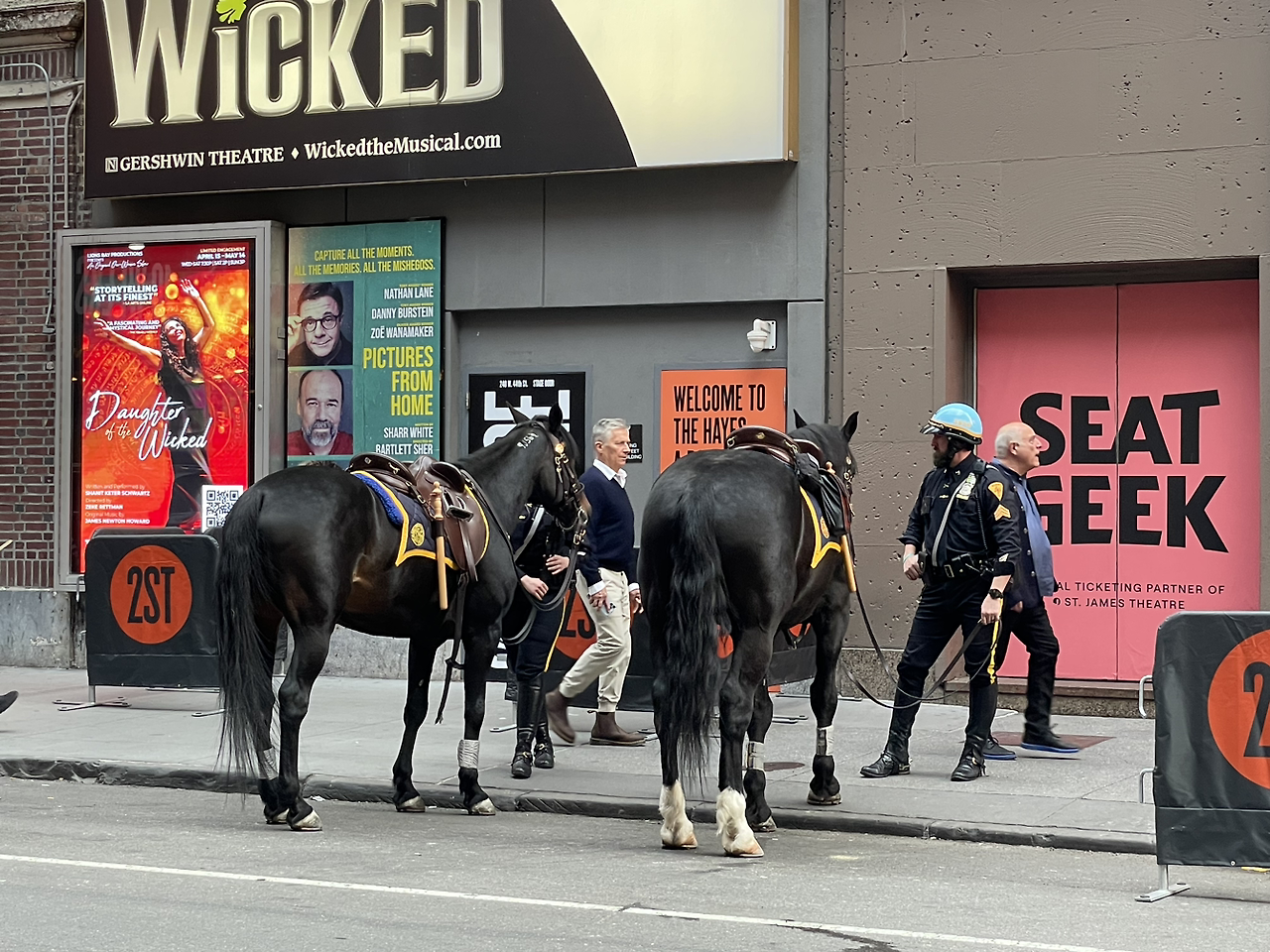 극장으로 들어가는 긴 줄을 기다리고 있자니 떠거덕 거리는 말발굽 소리가 경쾌하게 들려왔다. 오~ TV에서나 봤던 말탄 뉴욕 경찰이었다!!