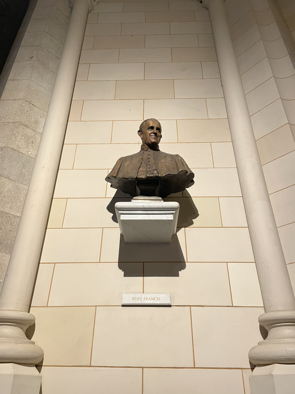 성당 안팎엔 지금의 교황이자 로마 가톨릭교회의 수장이신 프란치스코 교황의 사진과 동상이 걸려 있다. '프란치스코'하면 고타마 싯다르타처럼 모든 부와 지위를 벗어던지고 탁발 수도사가 된 '아시시의 프란치스코'가 떠오른다. 샌프란시스코도 이 분의 이름에서 유래됐긴 하다. 울 아들도 군대 성당에서 '프란치스코'란 세례명을 받았는데 종교적인 신념이라기 보다 맛난 간식 때문이었다.