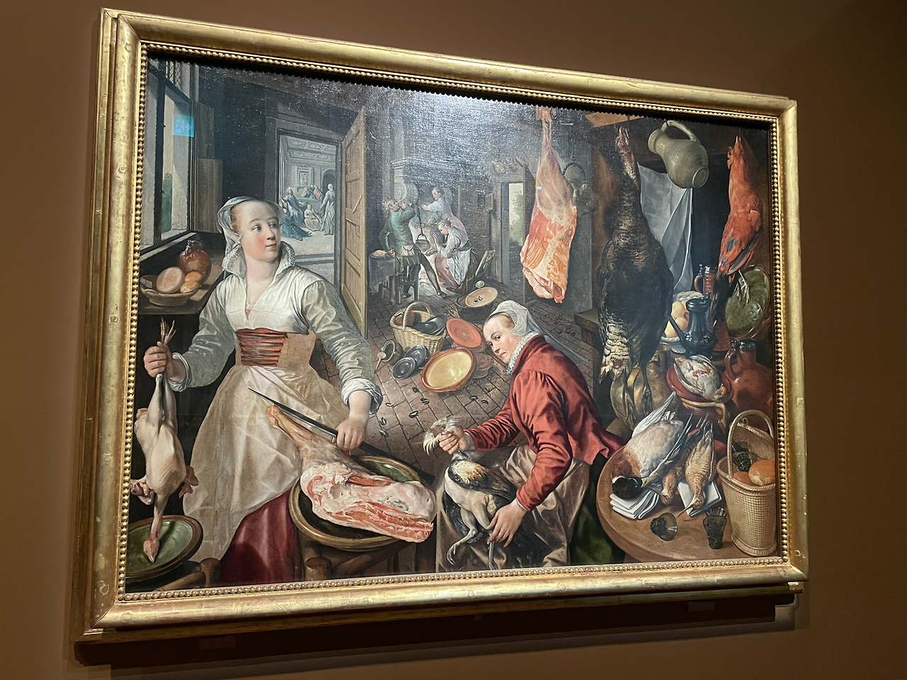 16세기 플랑드르 지역에서 활동한 요아킴은 식재료를 정교하게 그린 정물화를 통해 사치와 방탕한 삶에 대해 경각심을 불러일으키고자 했다. 4대 원소인 공기, 흙, 불, 물을 주제로 그린 그림 중 물과 불에 대한 그림이 전시됐다. 고전미술의 역사화와 종교화, 초상화 보다 서민에게 친숙한 정물화나 풍경화가 그림의 주요 소재로 떠오른 덴 종교개혁의 영향이 컸다. 물을 위한 생선 그림의 배경 뒤로 한가득 생선을 잡은 고깃배가 보이고, 불을 위한 사냥감을 손질하는 그림 뒤 열린 문으로 마르다와 마리아와 함께 앉아 있는 예수가 보인다.