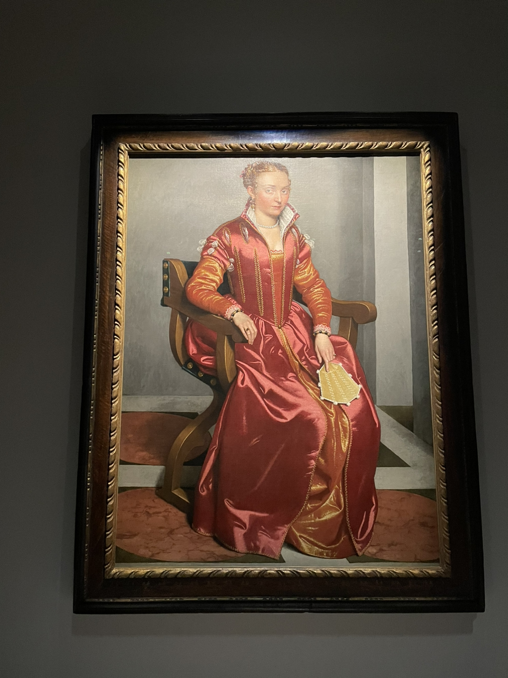 16세기 북부 유럽의 귀족들을 그린 대표적인 초상화가인 모로니는 주로 검은 옷을 입은 인물들을 많이 그렸는데, 이 그림은 온통 빨간색인데다 질감이 손에 느껴질 듯하다. 종교개혁으로 인해 제1차 공의회가 열렸던 트리엔트에서 반종교개혁의 사상을 표방하는 그림을 그리던 모로니는 같은 시기에 티치아노를 처음 만났다.