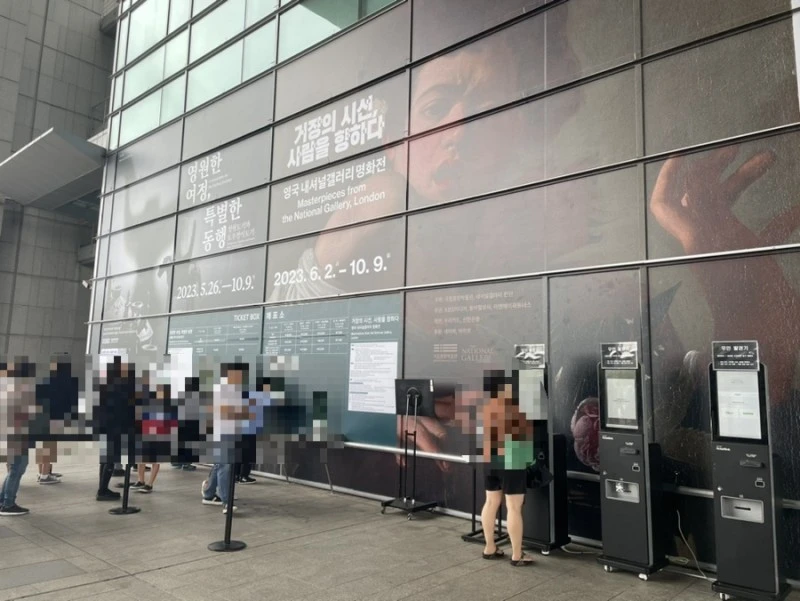 얼리버드로 미리 예매를 한 덕에 키오스크에서 쉽게 표를 출력했다. 연차를 낸 아들도 함께 오려 했으나 늘어지게 더 자고 싶다길래 오후에 만나 점심을 같이 먹기로 했다. 남은 표가 아까워 남편이 외국인에게 권했으나 <영원한 여정, 특별한 동행>이란 특별 전시를 보러 왔다며 거절해서 미안하다고 했다. 그러고 보니 그쪽 전시장의 표를 사려는 사람들이 더 많았고, 우리가 볼 전시회엔 한국인들이 대부분인데다 표를 이미 온라인으로 구매해 왔다. 입장 시간까지 한참을 서성이다 한 여성분이 홀로 서 있길래 사정을 설명한 후 표를 그냥 드렸더니 매우 고마워하셨다.