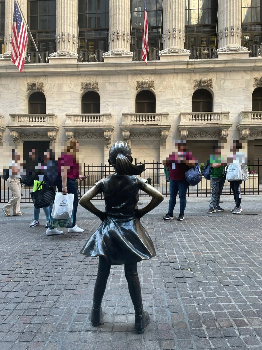'두려움을 모르는 소녀(Fearless Girl)'가 증권거래소를 향해 기세등등하게 서있다. 소녀의 얼굴은 생각보다 겉늙고 표정도 그리 당돌해 보이지 않았다. 오히려 뒷모습에서 기개가 느껴졌다. 직장 내 성별의 다양성을 향한 메시지를 내포하고 있는 이 소녀 동상은 원래 '돌진하는 황소' 앞에 세워졌었으나 2018년 11월에 이곳으로 옮겨왔다. 소녀가 바라보는 쪽이 증권거래소가 아닌 세계로 향해 있으려면 과연 어디일까 싶었다...