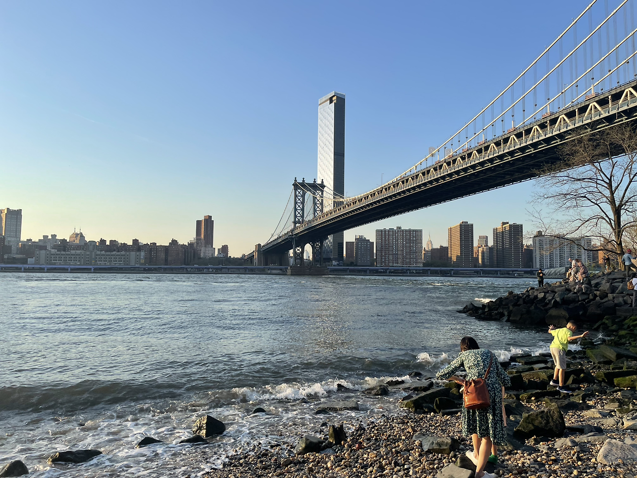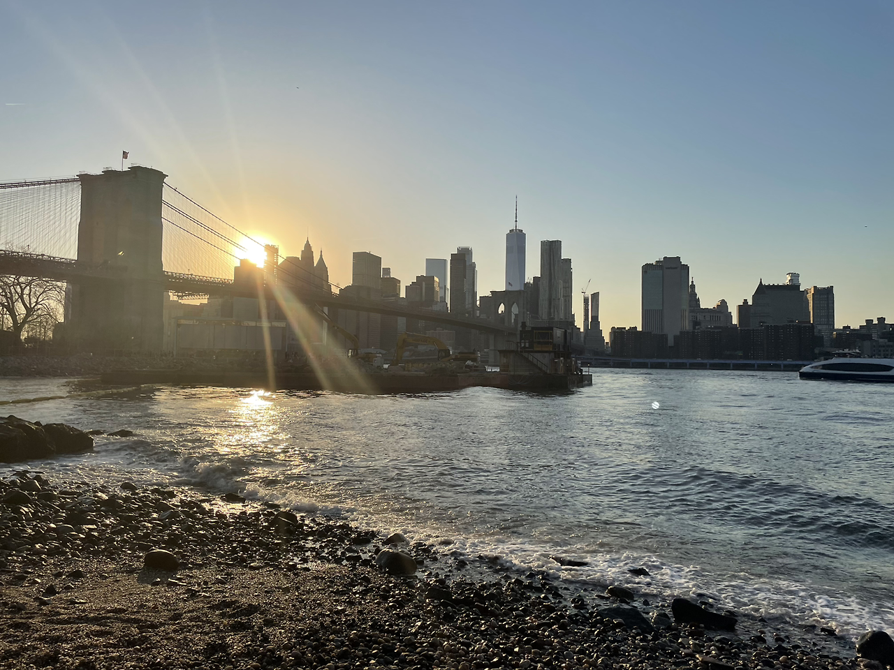 브루클린 브릿지와 맨해튼 브릿지 사이에 있는, 자갈 많은 페블비치 계단에 앉아 저무는 해를 가만히 바라봤다.