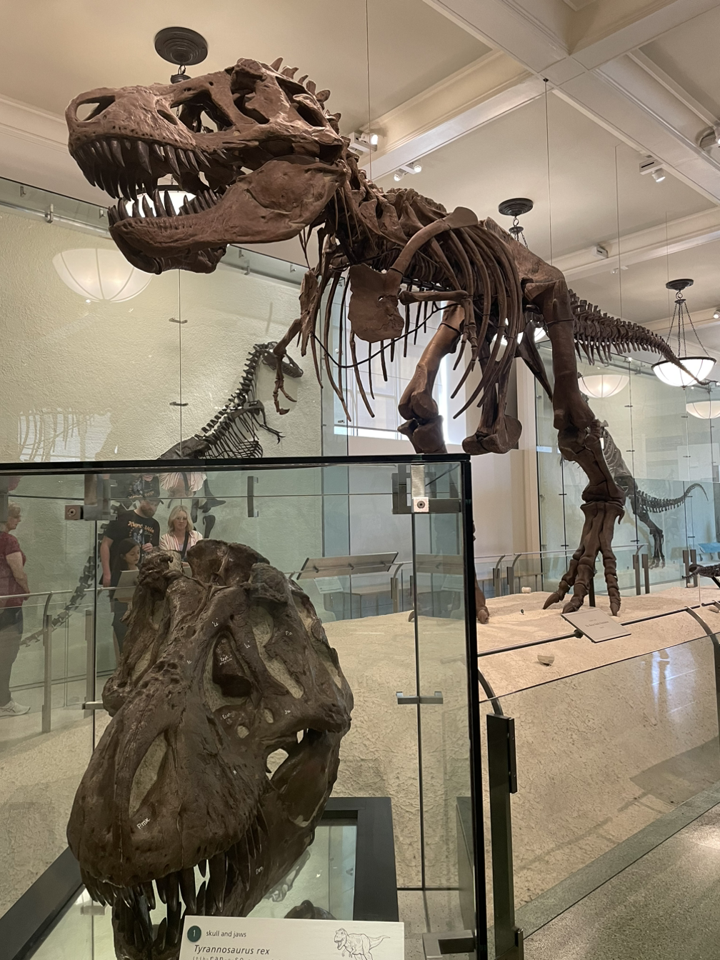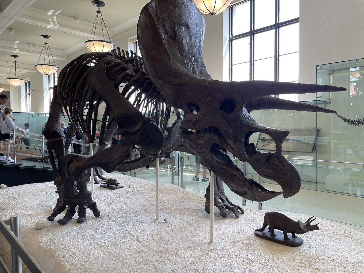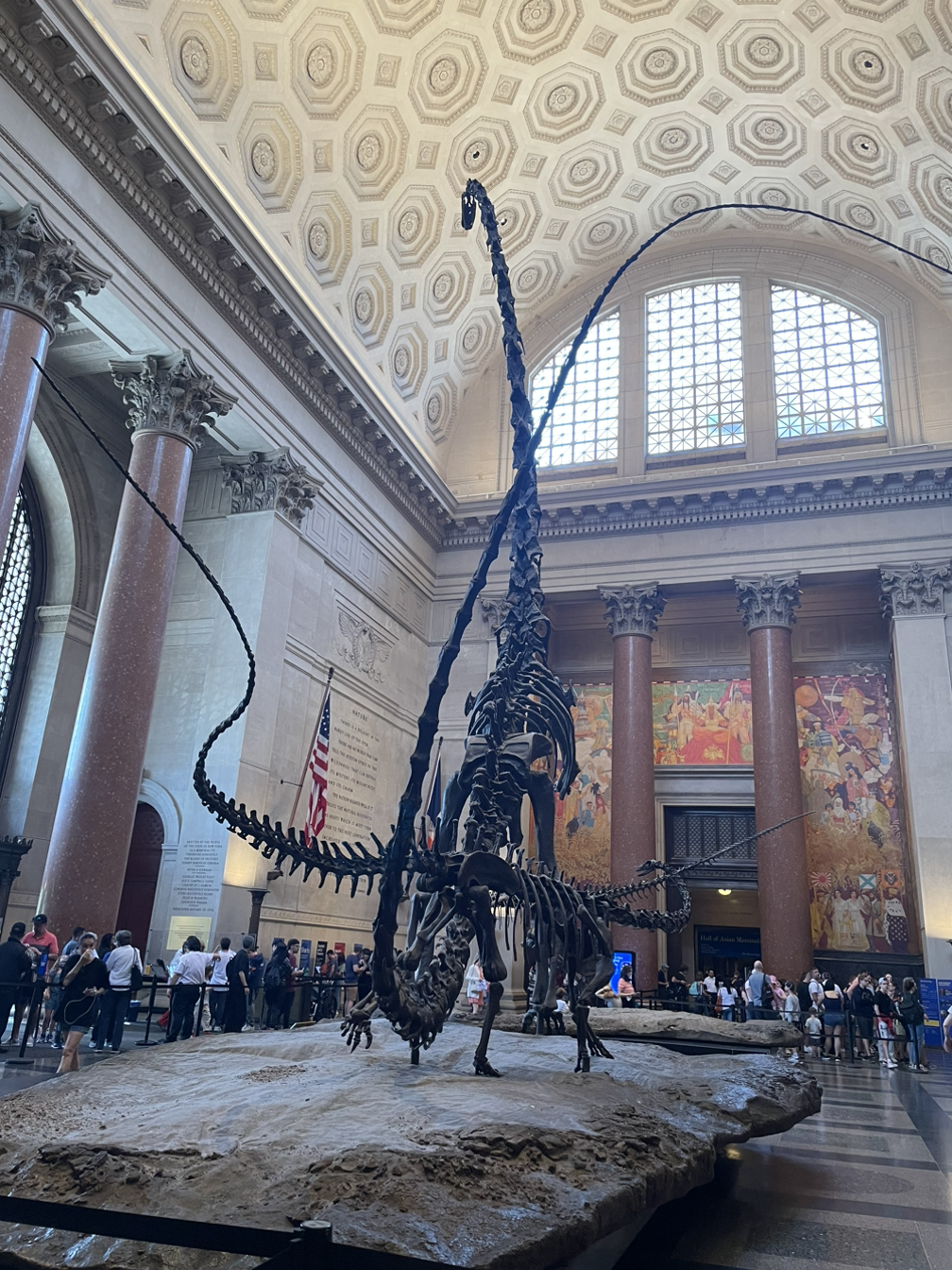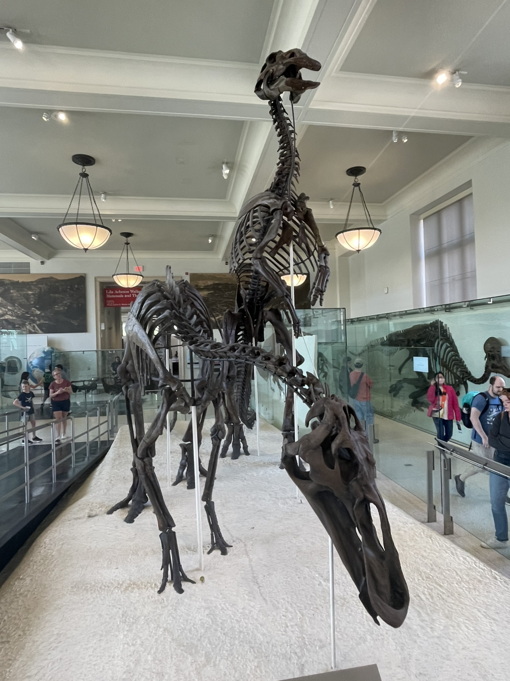 소지품 검사 후 박물관 로비로 들어서자 서늘하게 바뀐 공기를 느낄 새도 없이 다가온 거대한 공룡의 모습에 탄성이 저절로 나왔다. 순간 쥐라기 공원의 배경음악이 들리는 듯도 했다. 새끼를 지키려고 '알로사우루스'와 사투를 벌이고 있는 '바로사우루스(왼쪽)'의 형상에 압도된 거다.