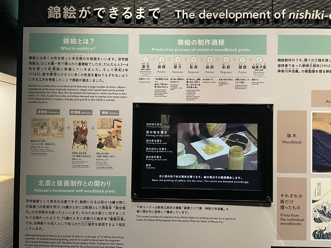 니시키에(錦絵)란 색을 넣어 찍은 목판화를 말하는데, 그 과정을 동영상으로 보여주고 있어 신기했다.