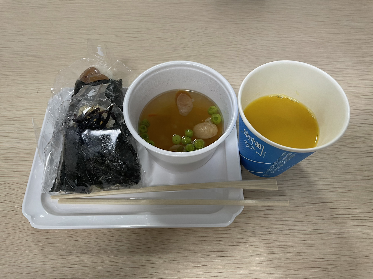 약을 먹고 푹 잔 덕에 개운하게 일어나 스트레칭을 했다. 어제보다 좀 늦게 식당으로 내려갔더니 사람들로 북적여 작은 쟁반에 담아 방으로 갖고 올라왔다. 확실히 삼각 김밥은 미소시루와 잘 어울린다. 기름이 둥둥 뜬 야채 스프랑 먹자니 느끼해서 오렌지 주스를 연신 들이켰다.