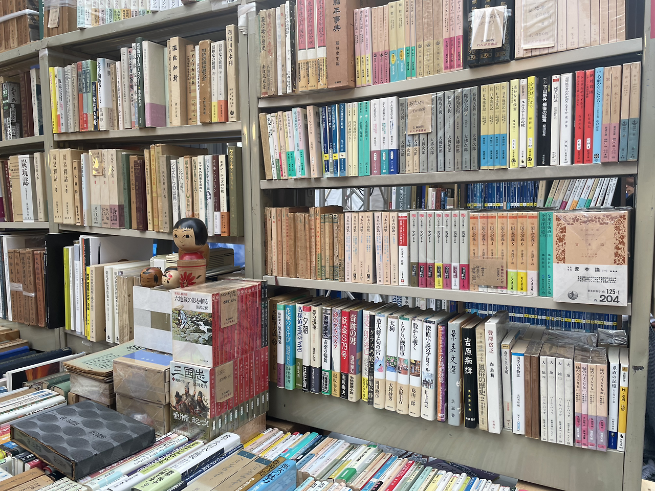 본격적으로 길거리에 나온 책 매대를 훑어보며 진보초 거리를 거닐었다. 비록 내가 원한 책은 없었지만 책등에 쓰여있는 책 제목만 읽어도 무척 재미있었다.