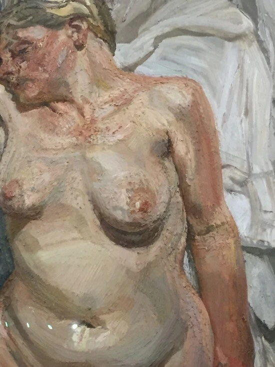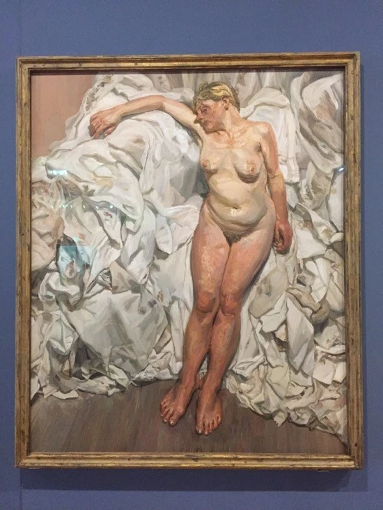 정신분석학자 지그문트 프로이트의 손자인 루시안 프로이트의 이 그림은 너무나 사실적으로 묘사되어 있다. 그는 작품에서 대상을 결코 이상화하는 법 없이 육체 자체를 통해 일상적 현실을 드러내려 했다.