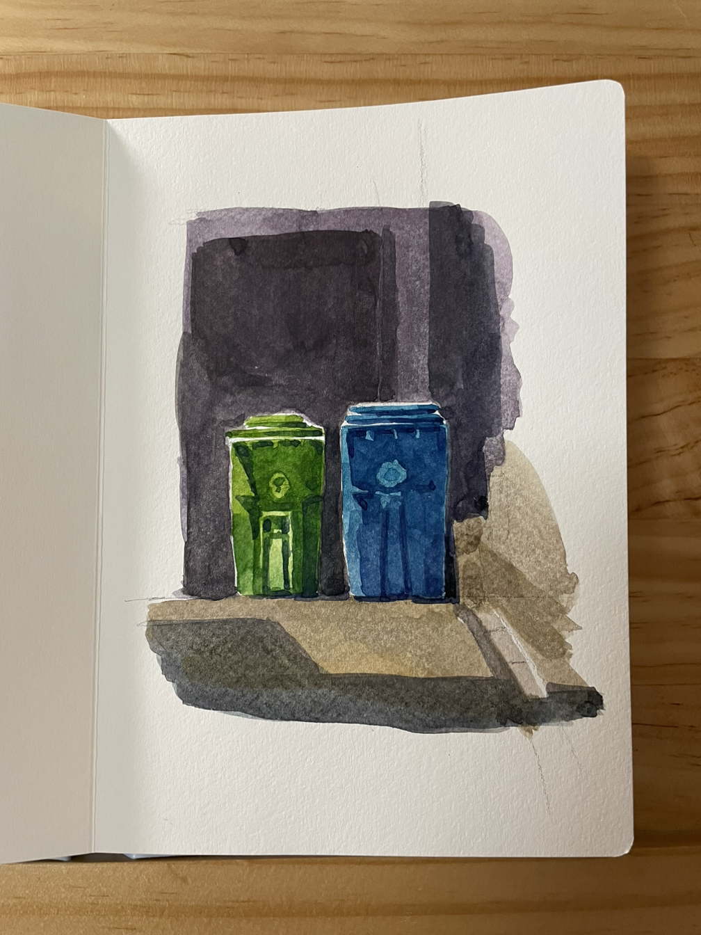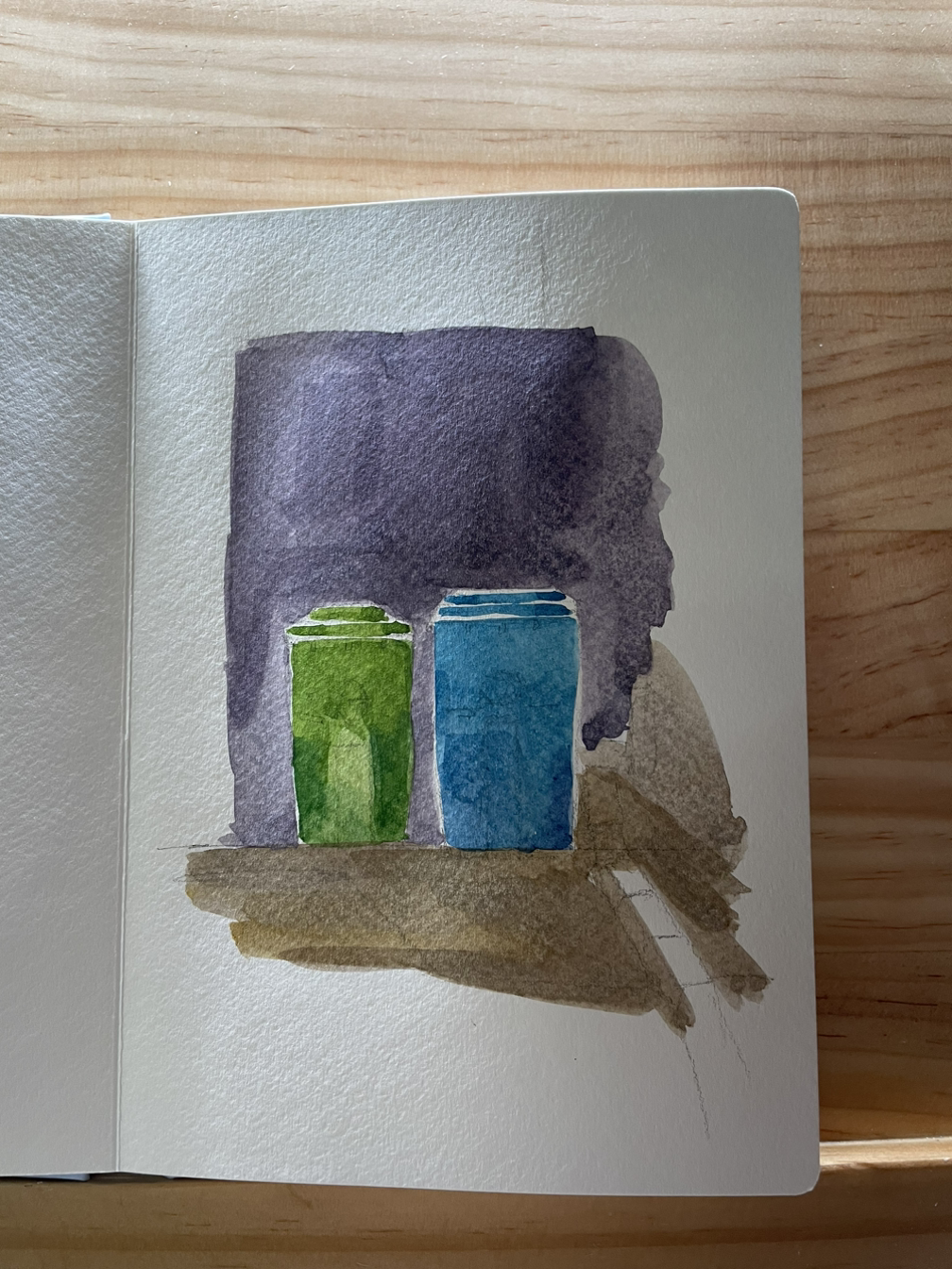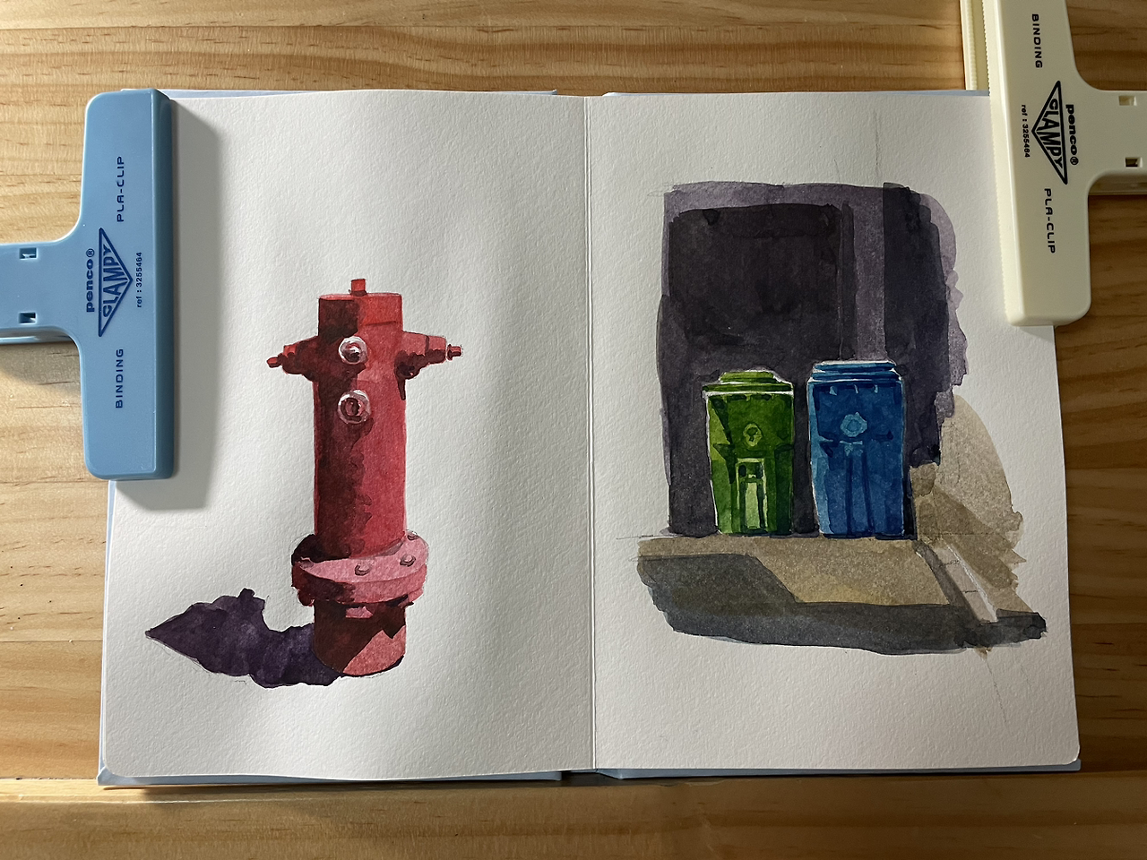 신호등 같이 빨강, 초록, 파랑의 물체들을 함께 놓고 보니 뭔가 깨달음이 퍼뜩 들었다. 그늘 속에 가리어진 색들을 어떤 색으로 칠해 가야 할지 이제야 감을 잡았다 할까… 다음으로 넘어가기 전에 색 정리를 다시 한번 해봐야겠다.